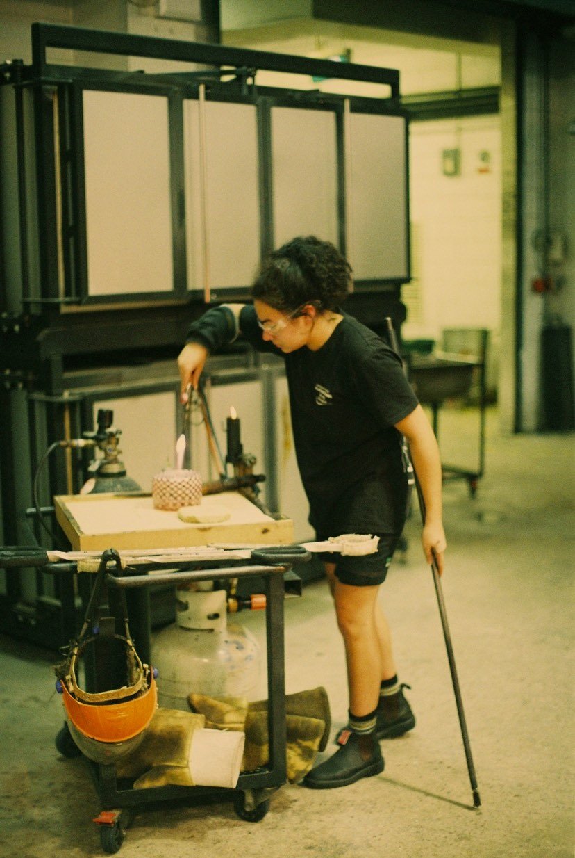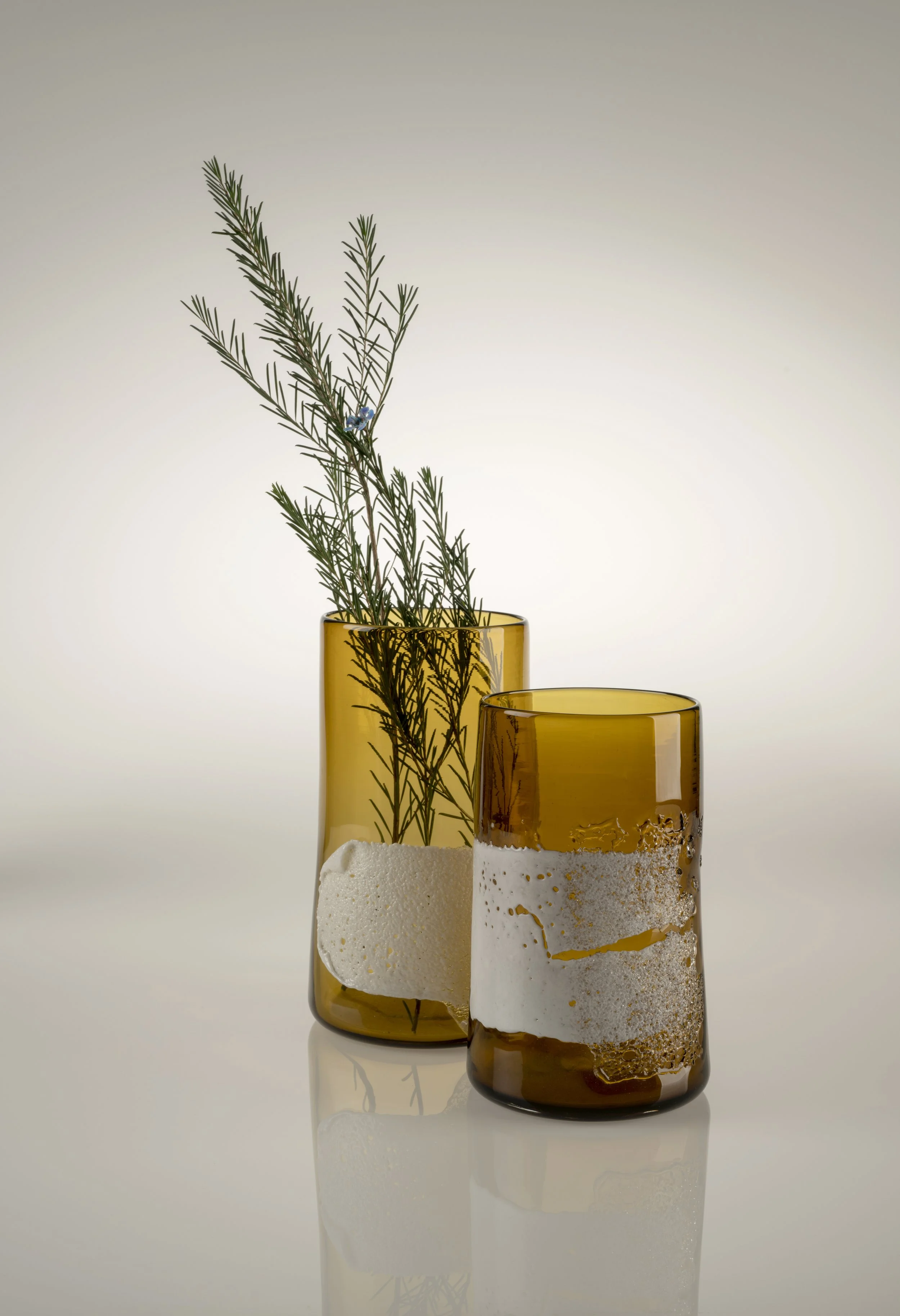 The Hessians Vase is an iconic Vase of mine. Starting off the trajectory of adding crushed glass to my pieces. Inspired by organic growth of lichen, I was inspired by how the crushed glass fuses together in a non homogenous pattern sparking my interest.